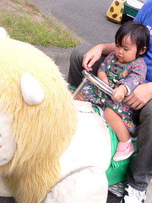 しかし我がムスメコは動物よりも乗り物がいたく気に入った様で乗り物で大喜び。