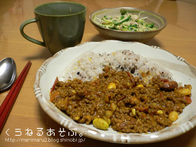 ・ミックスビーンズとトマトのキーマカレー